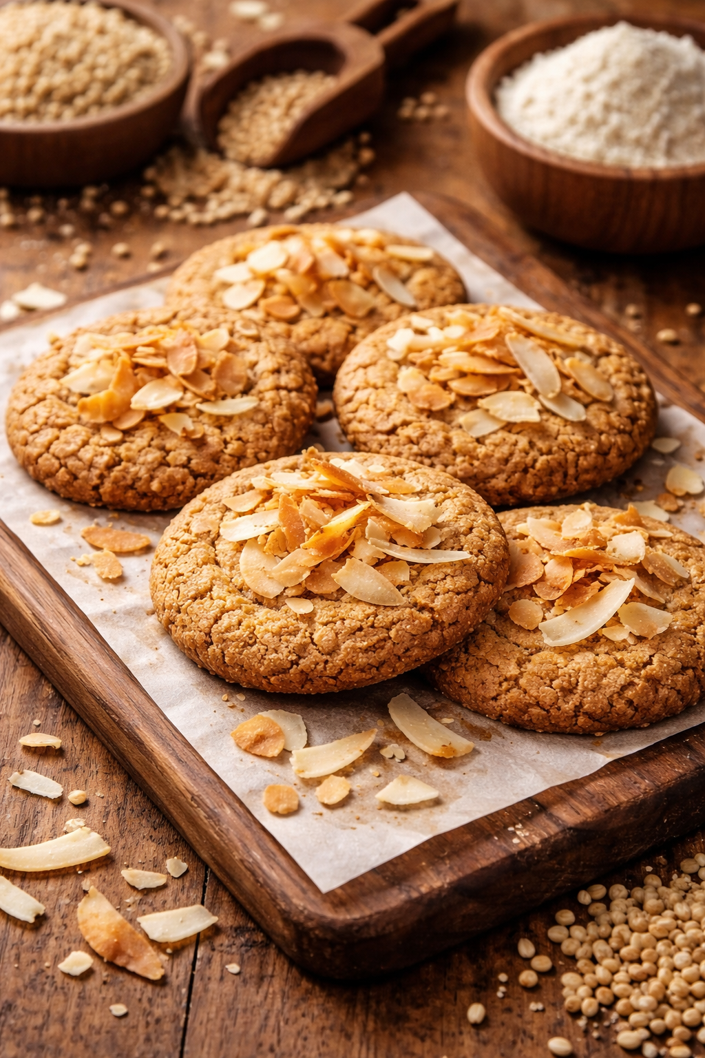 Light, gut-friendly & naturally gluten-free Crunchy Jowar cookies topped with roasted coconut flakes.Consists of Butter, Organic jaggery, salt, 100% Jowar flour.